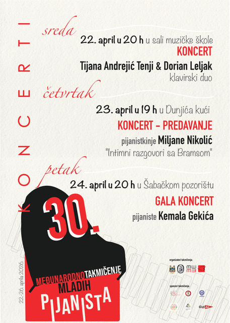 U školskoj 2025/2026. godini u našoj školi biće realizovano 30. Međunarodno takmičenje mladih pijanista. Sve informacije u vezi sa takmičenjem biće blagovremeno objavljene na sajtu škole.